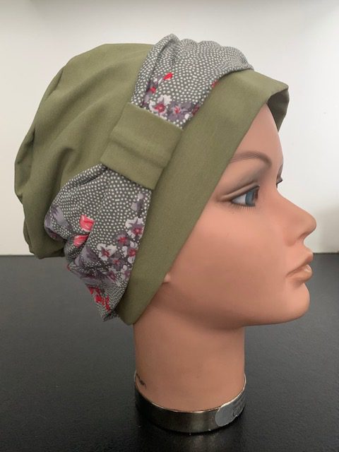 Olijfgroene beanie met kleine bloemetjes band